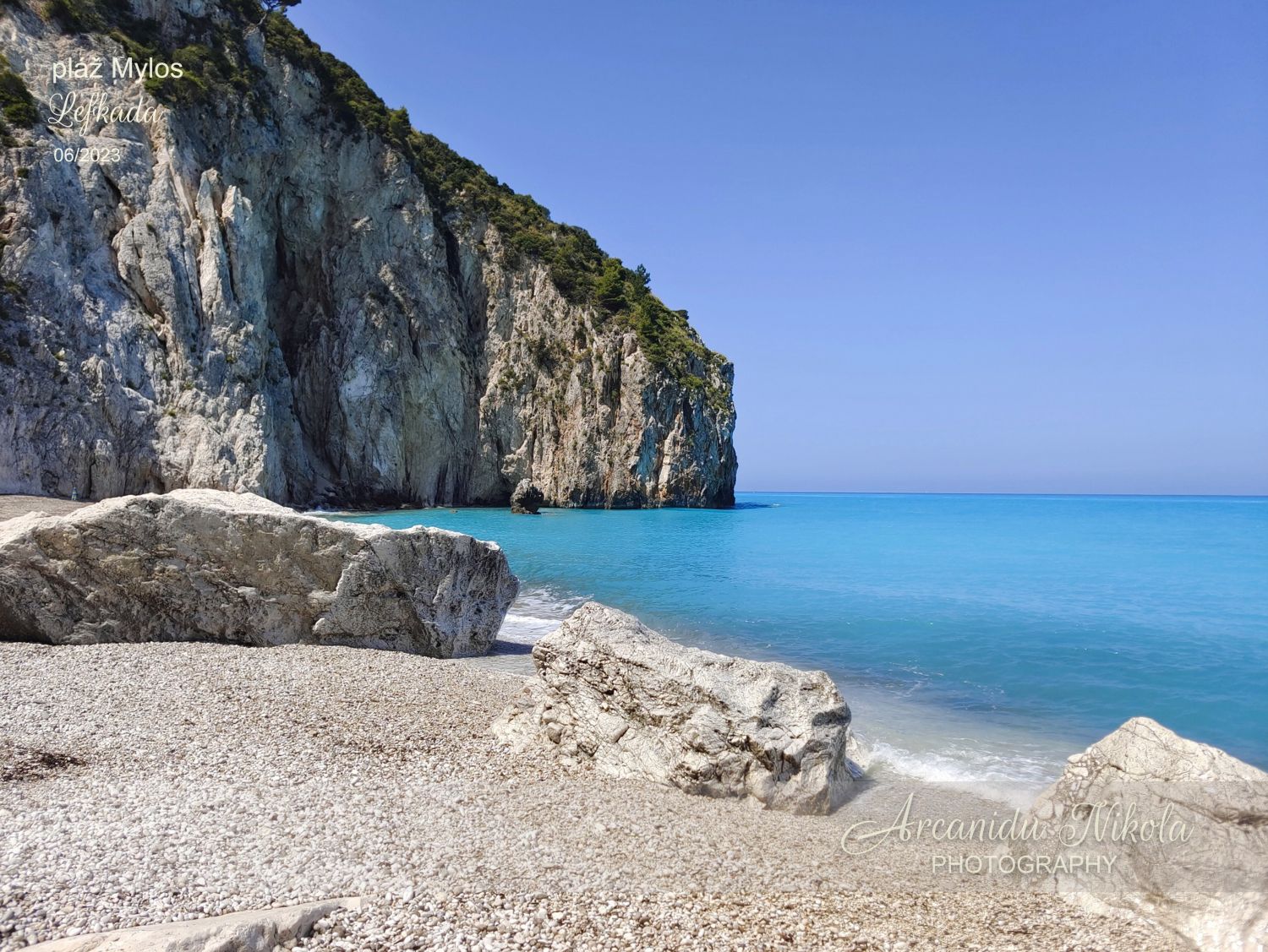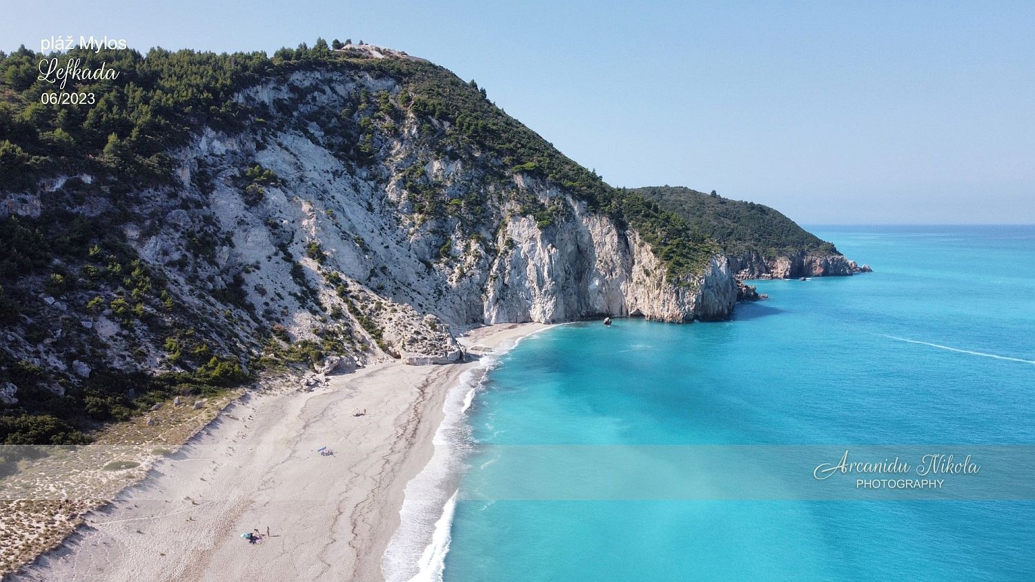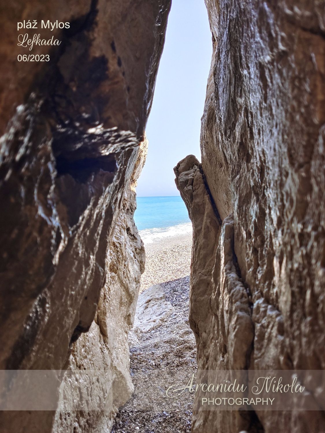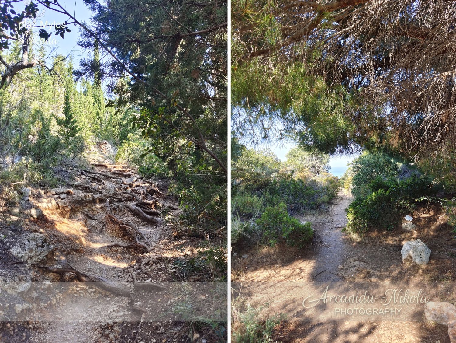 úzké a klikaté cestě pořád nahoru. Kdo má špatnou fyzičku či problém s pohybem, možná to po několika minutách vzdá, otočí se a raději zamíří na pláž v Agios Nikitas… Jestliže vydržíte, stanete na krásném místě, odkud je parádní výhled na pláž Mylos.