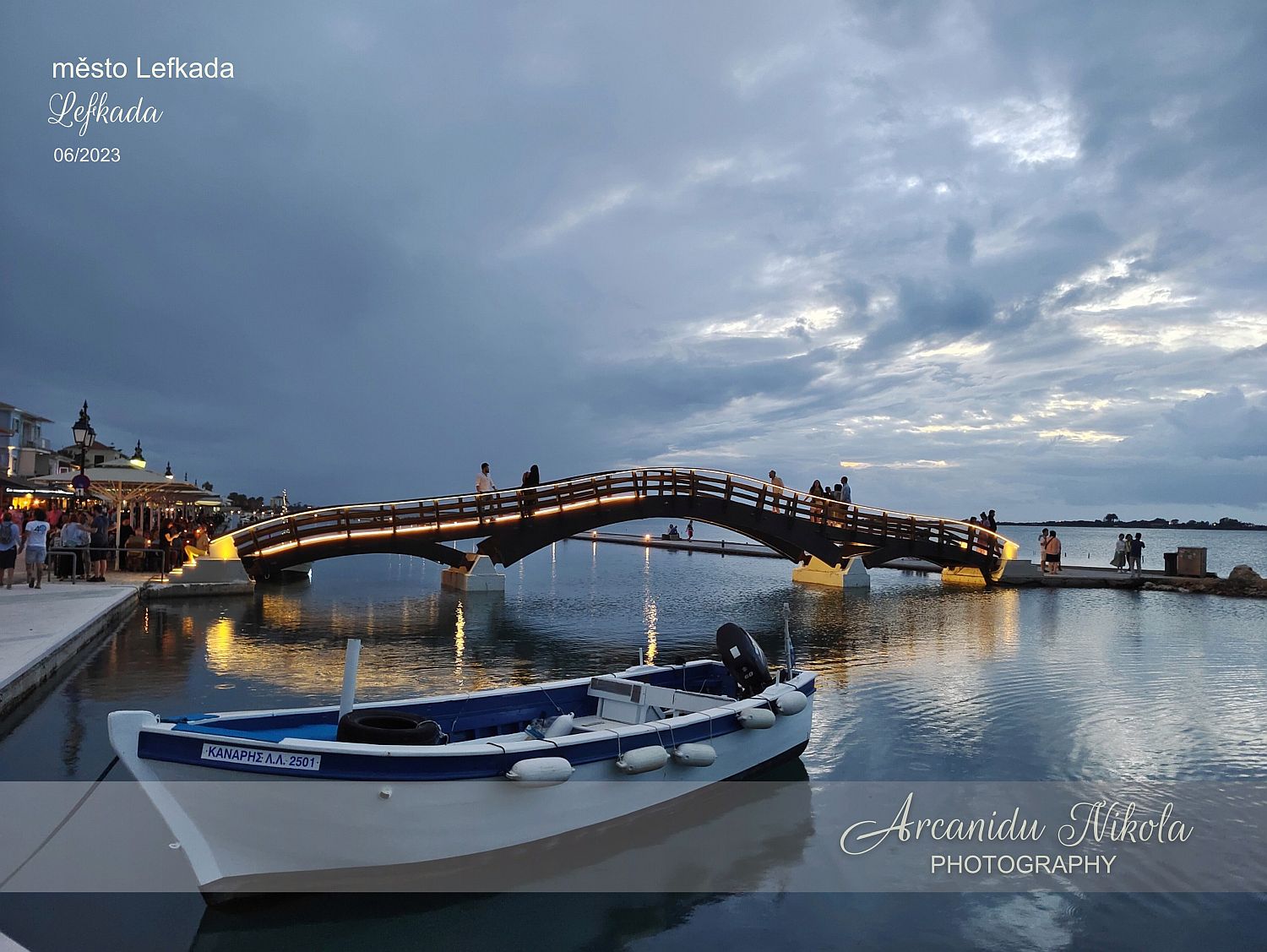 Starý dřevěný most u vchodu do města Lefkada je skvělým místem k zachycení četných krásných západů slunce v této oblasti. V blízkosti je mnoho kaváren, barů a restaurací a malebné úzké uličky.