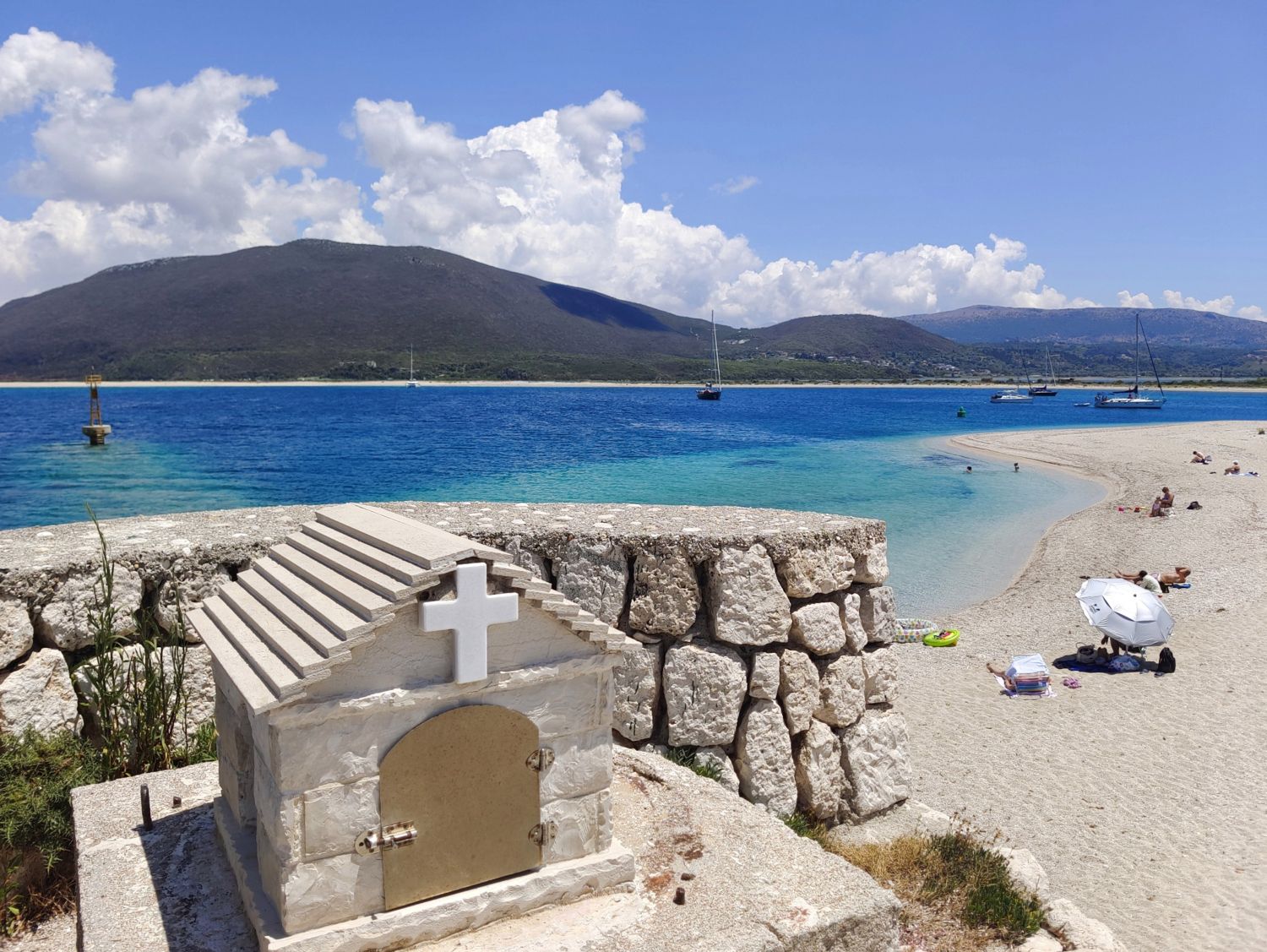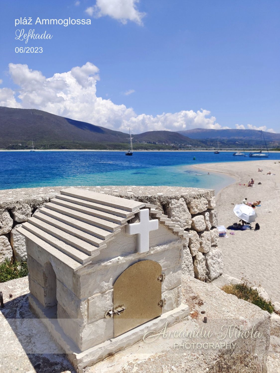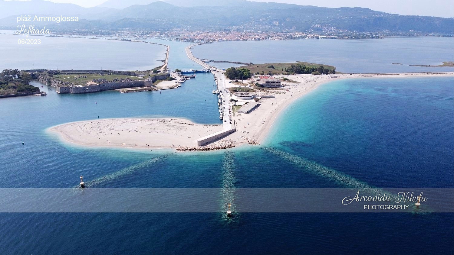 hlavního města ostrova Lefkada, a to přímo u cesty, která přivádí návštěvníky z území pevninského Řecka.