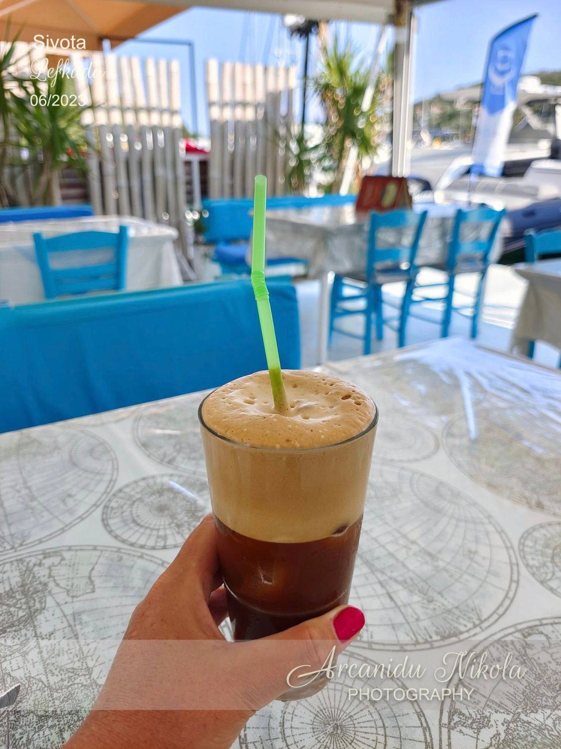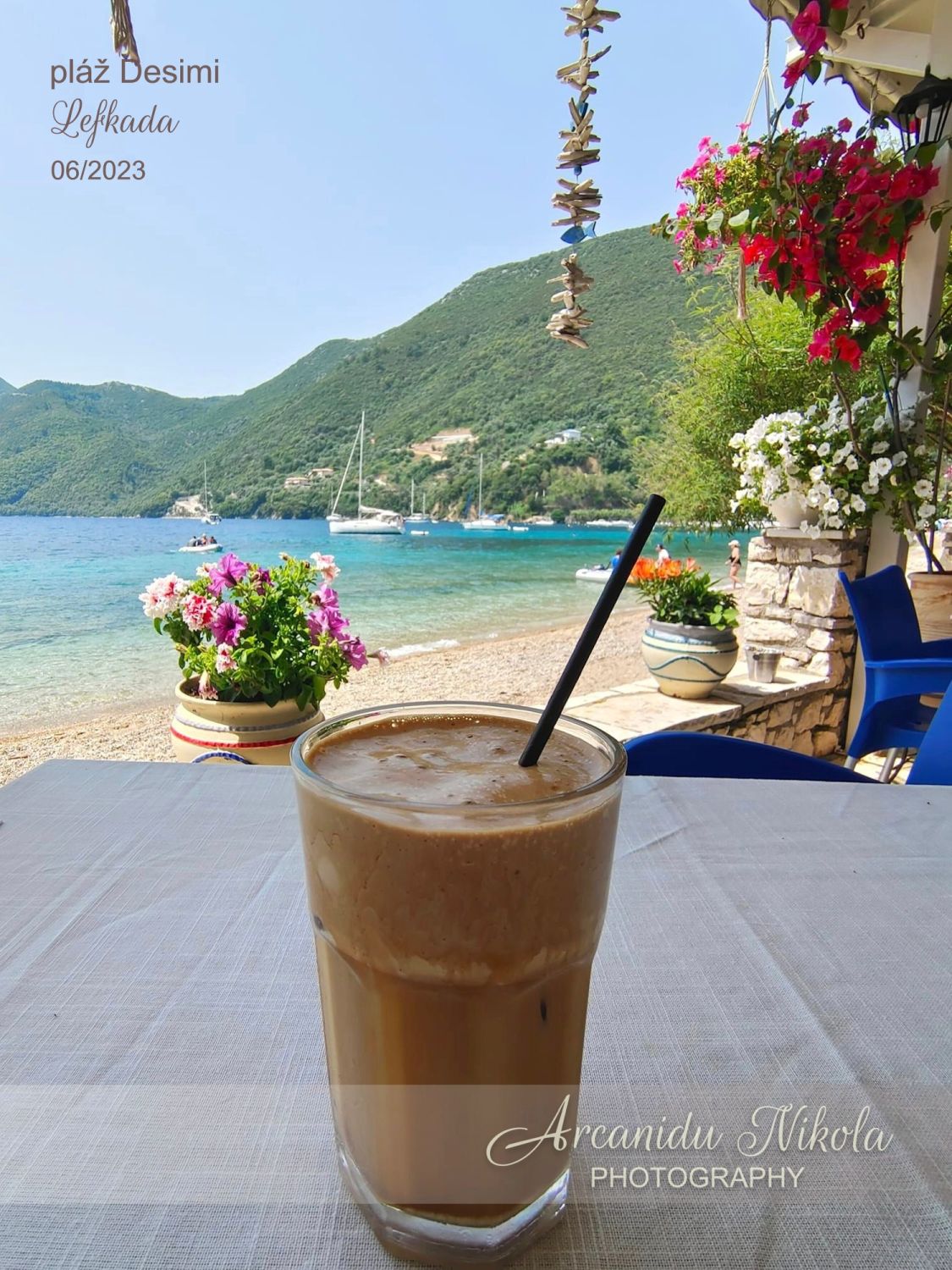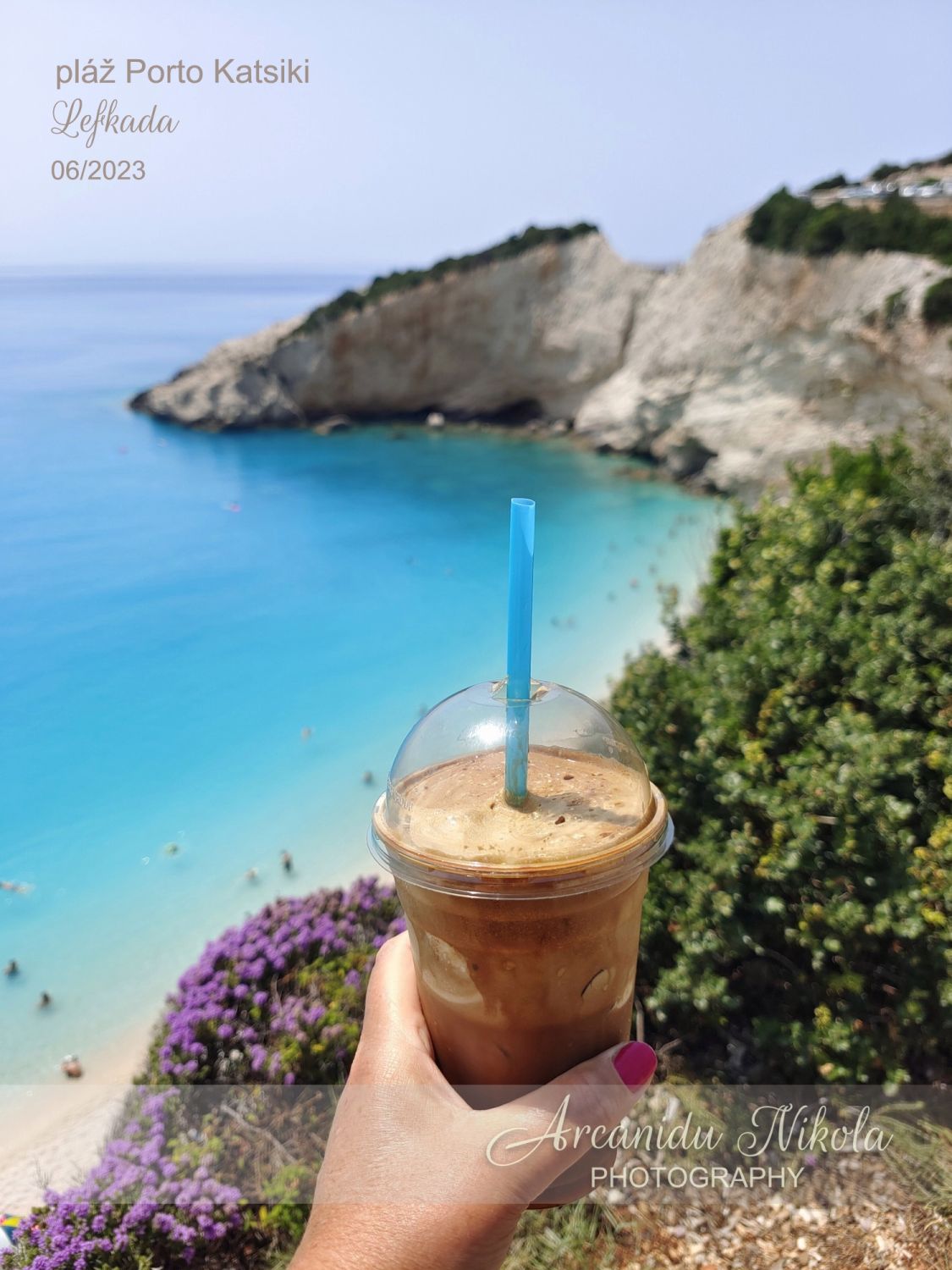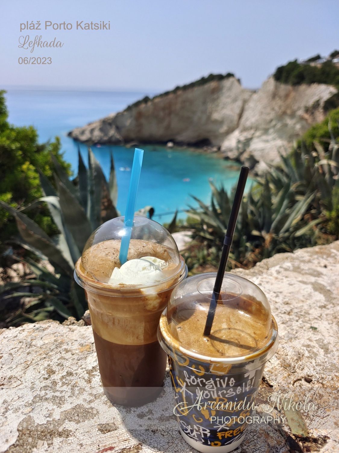 Nad pláží Porto Katsiki je bar, kde jsme ochutnali Frappe Baileys a Frappe se zmrzlinou. Doporučuji s mlékem a cukrem (metrio = středně sladké nebo klidně glyko = sladké)
