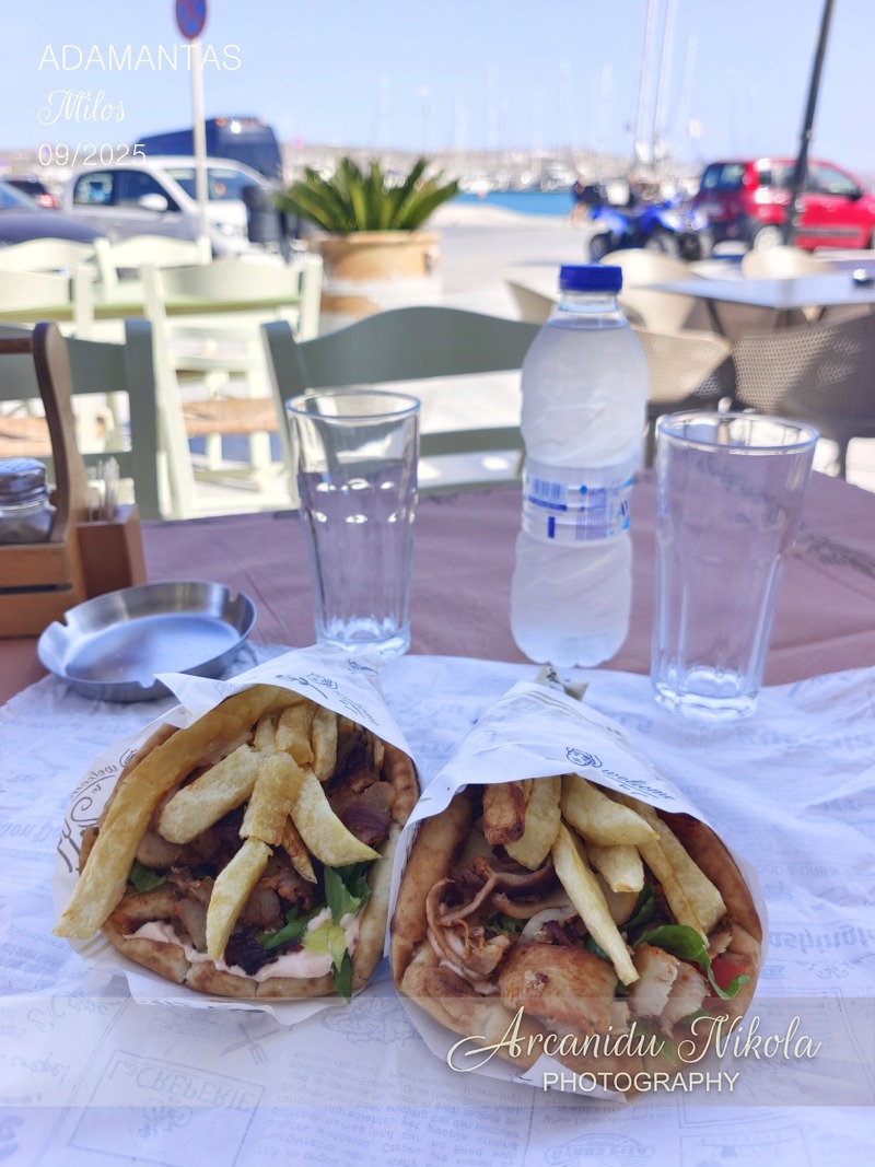 Taverna Gyros of Milos (O gyros tys Milou) - Velmi rychlá obsluha, chutný gyros (škoda jen, že uvnitř byla omáčka s kečupem a majonézou, a ne tzatziki), až při placení jsem se dozvěděla, že jsem to měla říct u objednávky.