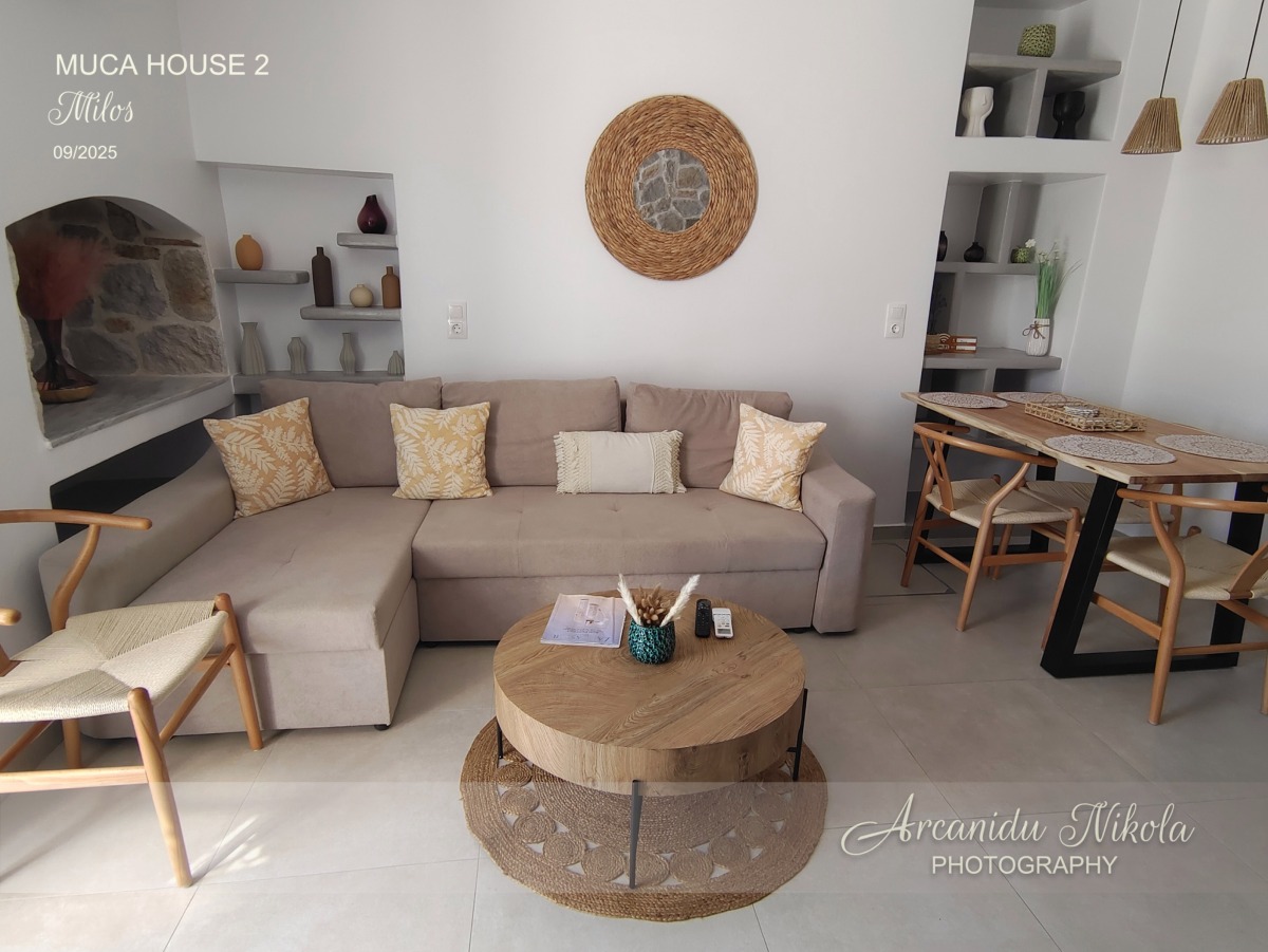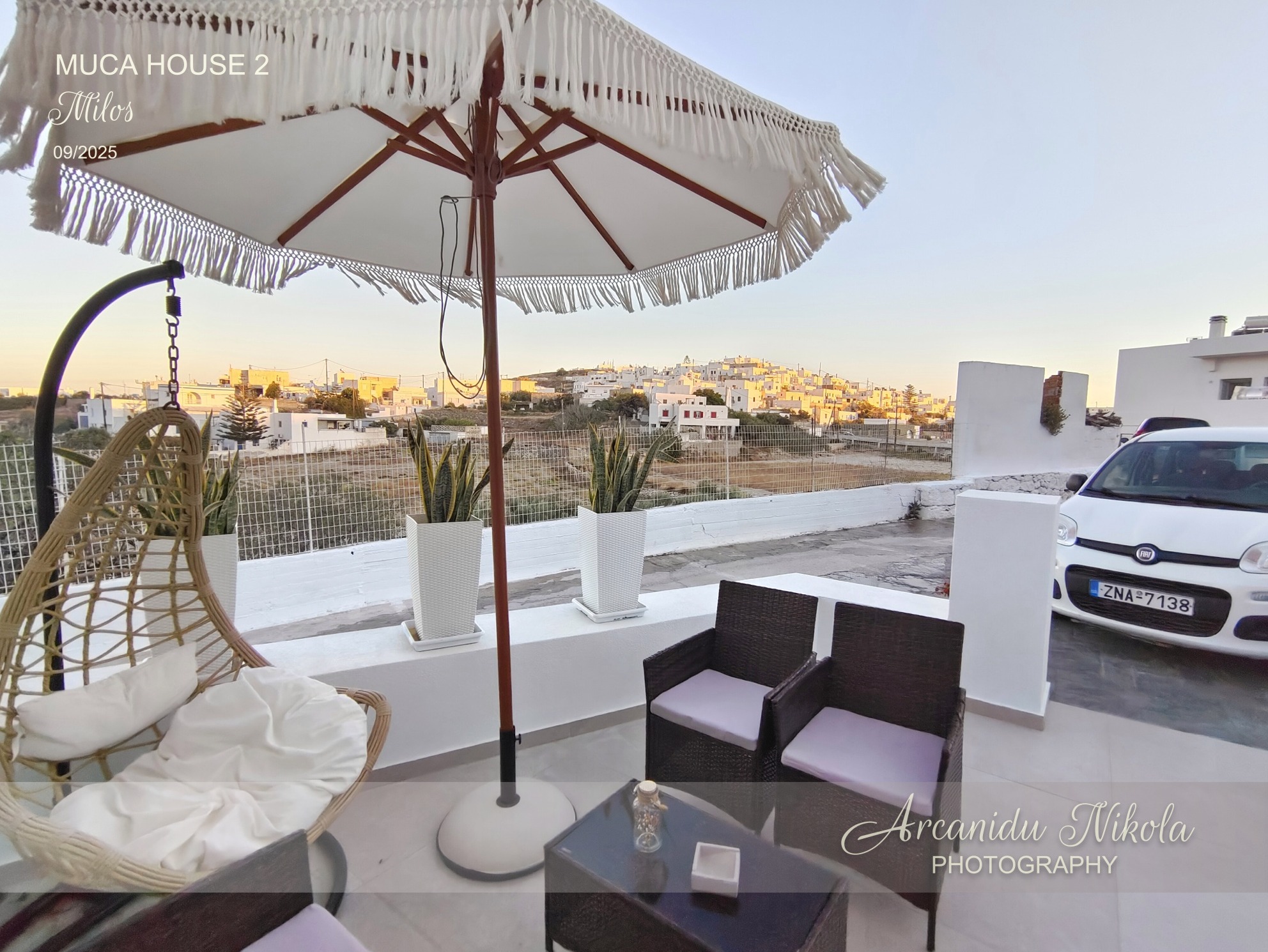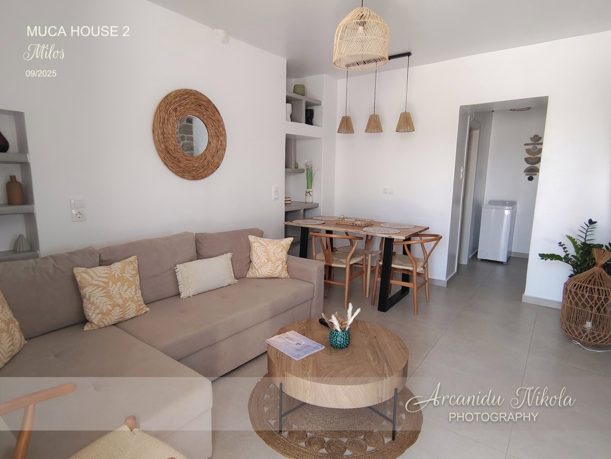 Dům Muca house 2 byl nedávno kompletně zrekonstruován. Nachází se ve vesnici Triovasalos, která je velmi blízko turistické vesnice Plaka, pláží Sarakiniko, Plathiena, Fyropotamos a Mandrakia (5 minut jízdy).