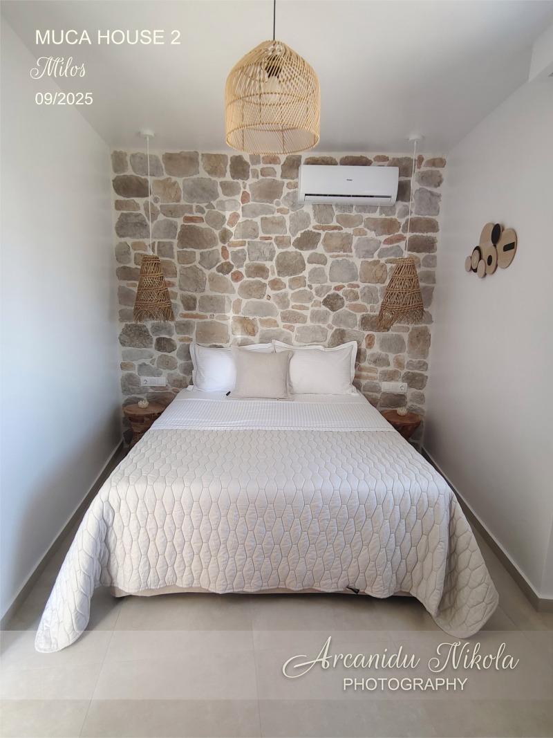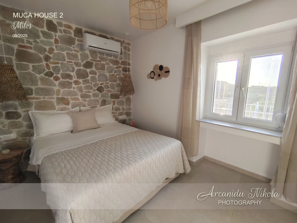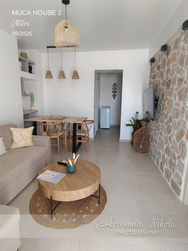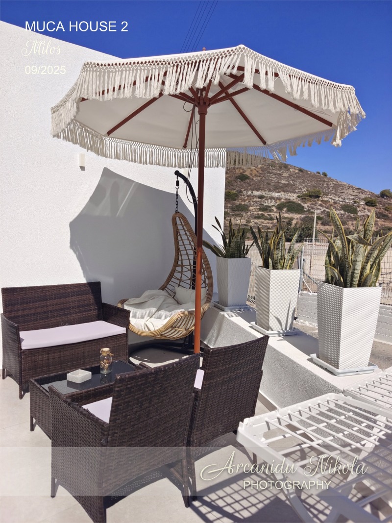 Dům Muca house 2 byl nedávno kompletně zrekonstruován. Nachází se ve vesnici Triovasalos, která je velmi blízko turistické vesnice Plaka, pláží Sarakiniko, Plathiena, Fyropotamos a Mandrakia (5 minut jízdy).