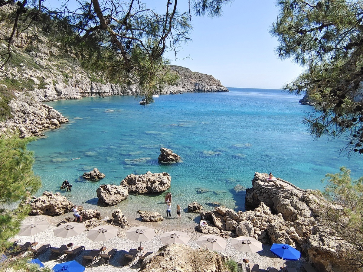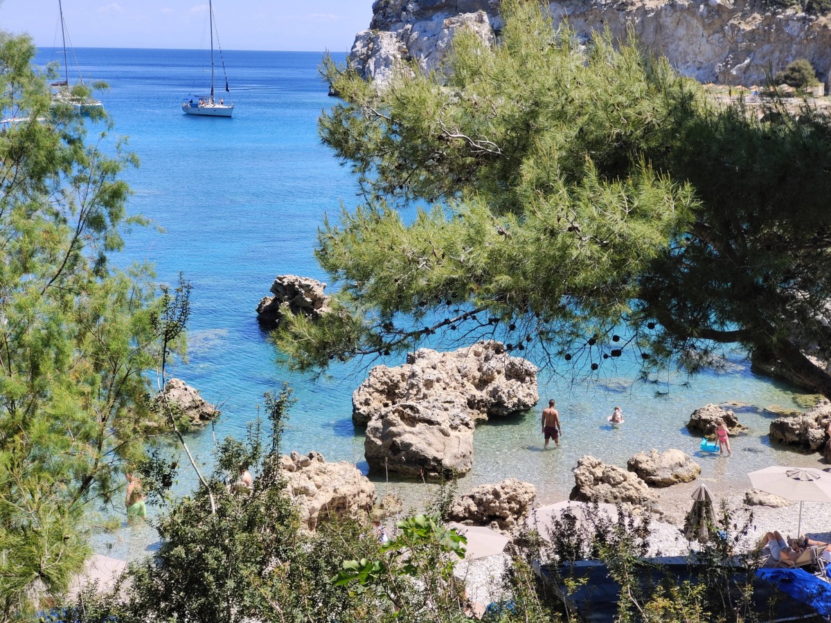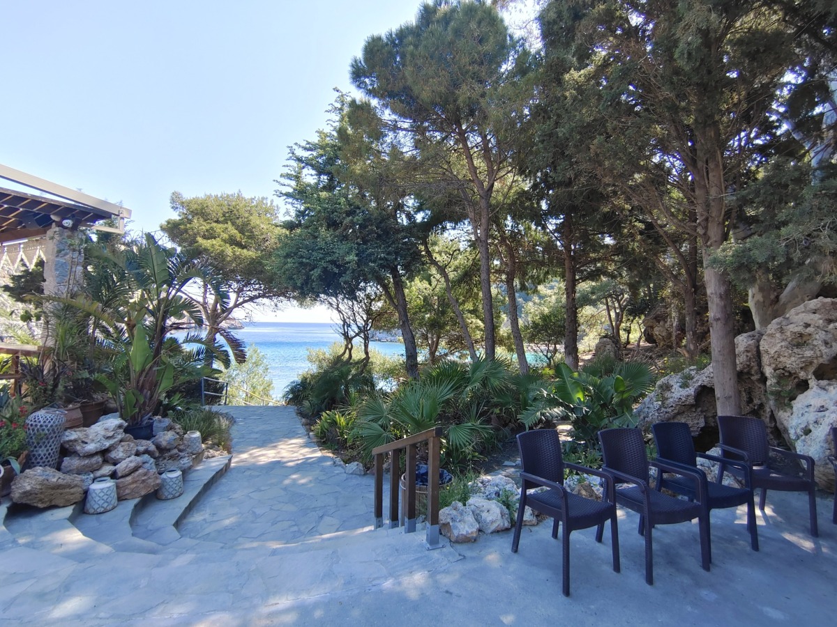 Této verzi věřím víc, možná i proto, že jsem na toto téma mluvila s místními, když jsme u Tasose kupovali mojito a mezi obyvateli seděl i jeden muž, jehož dědeček v této zátoce pracoval jako hlídač právě u