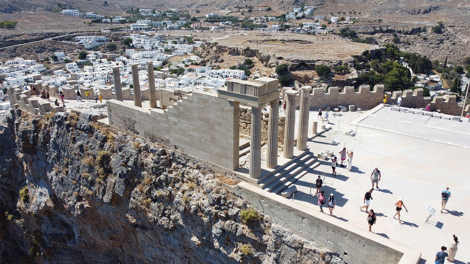 římské, byzantské, křižácké a osmanské architektury. Dvě z nejpůsobivějších míst uvnitř Akropole v Lindu jsou Chrám Athény a Propylaje svatyně.