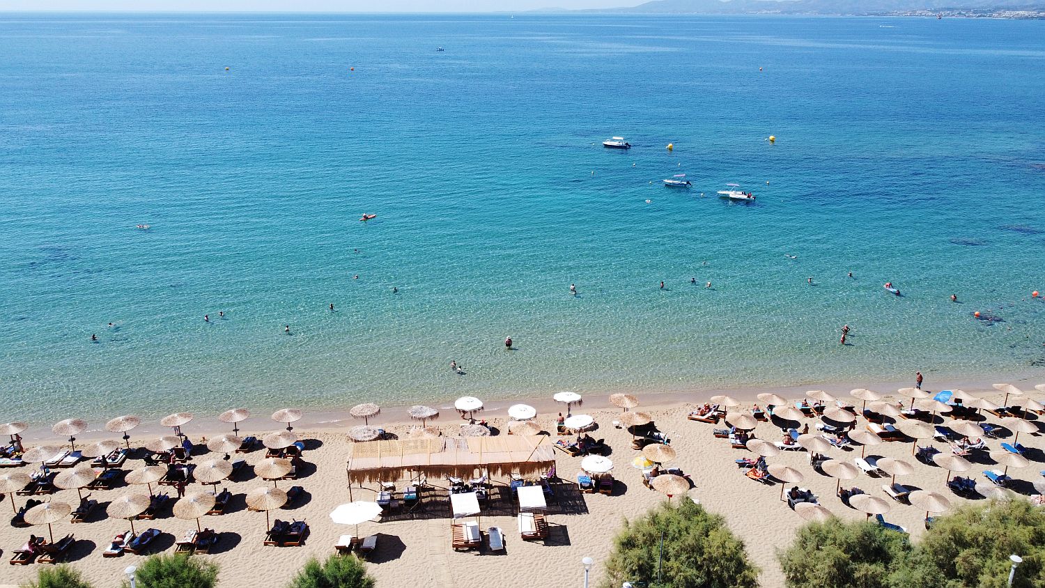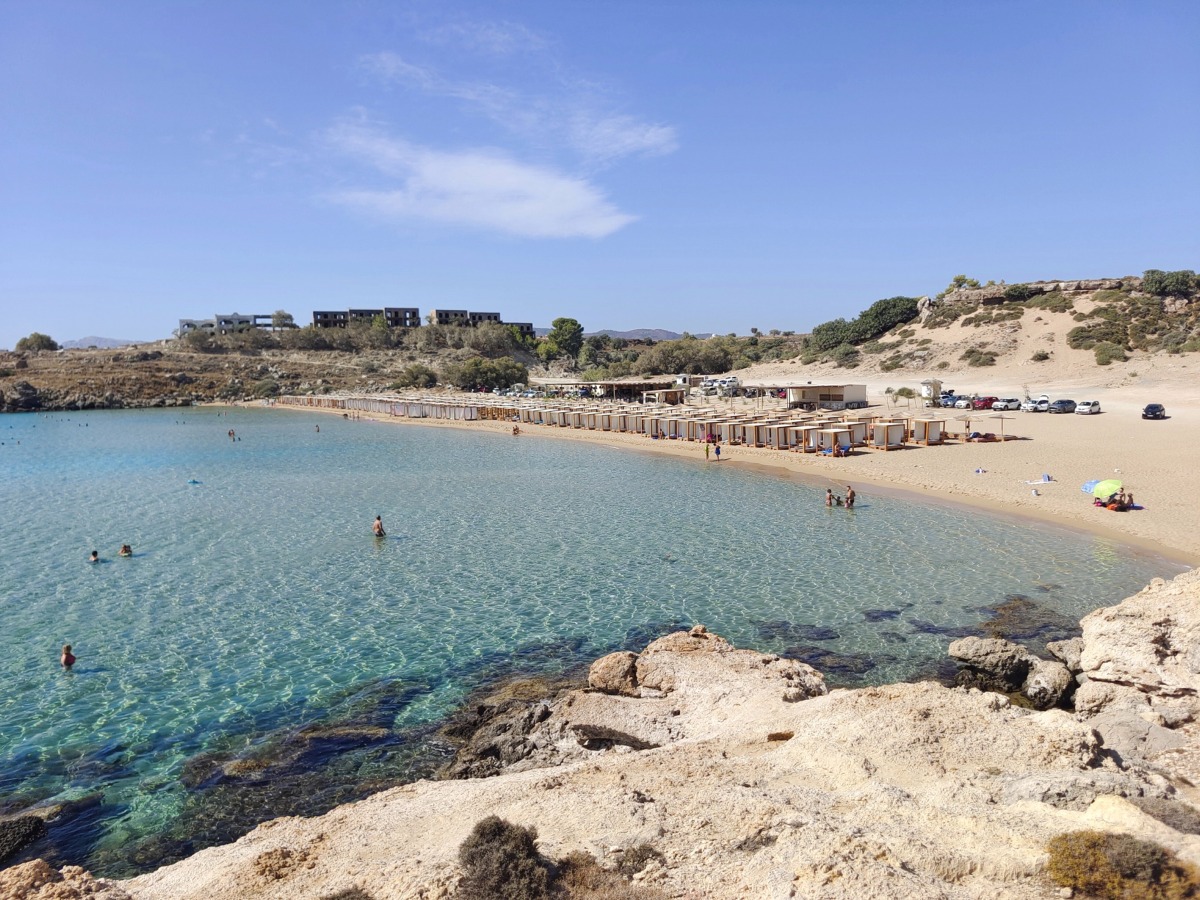 je plně organizovaná s lehátky, slunečníky, rybářskými tavernami a vodními sporty. Až tak moc organizovaná, že místo pro svoji osušku není snadné najít. Pokud přijdete ráno, dejte se vlevo k baru Nefeli,