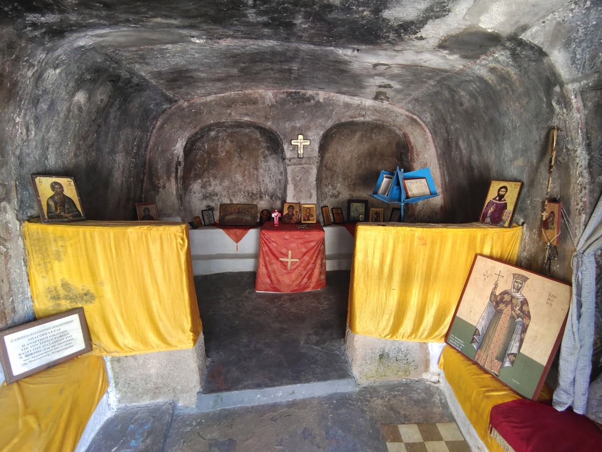 se dostanete do otevřeného prostoru. Byzantský kostel sv. Jana se nachází v prvním patře postaveném ve 13. nebo 14. století na zbytcích staršího kostela. Najdete zde také pozůstatky chrámu, který pravděpodobně pochází z římského období.