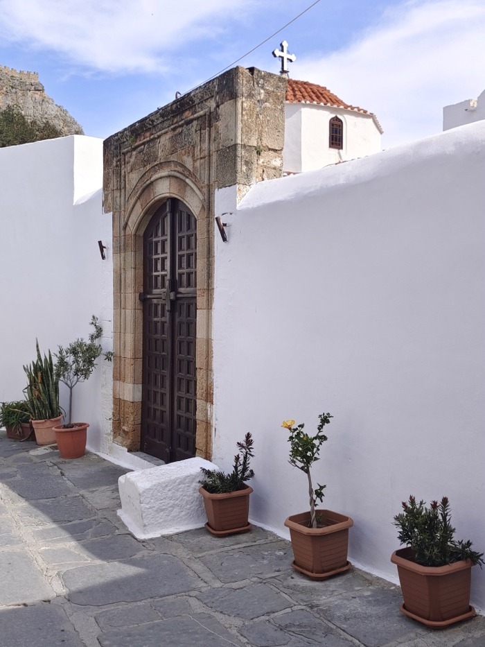 - kaple a kostel zasvěcený svatému Jiří. Kostel byl postaven na konci 14. století a leží v historickém centru starobylého města Lindos.