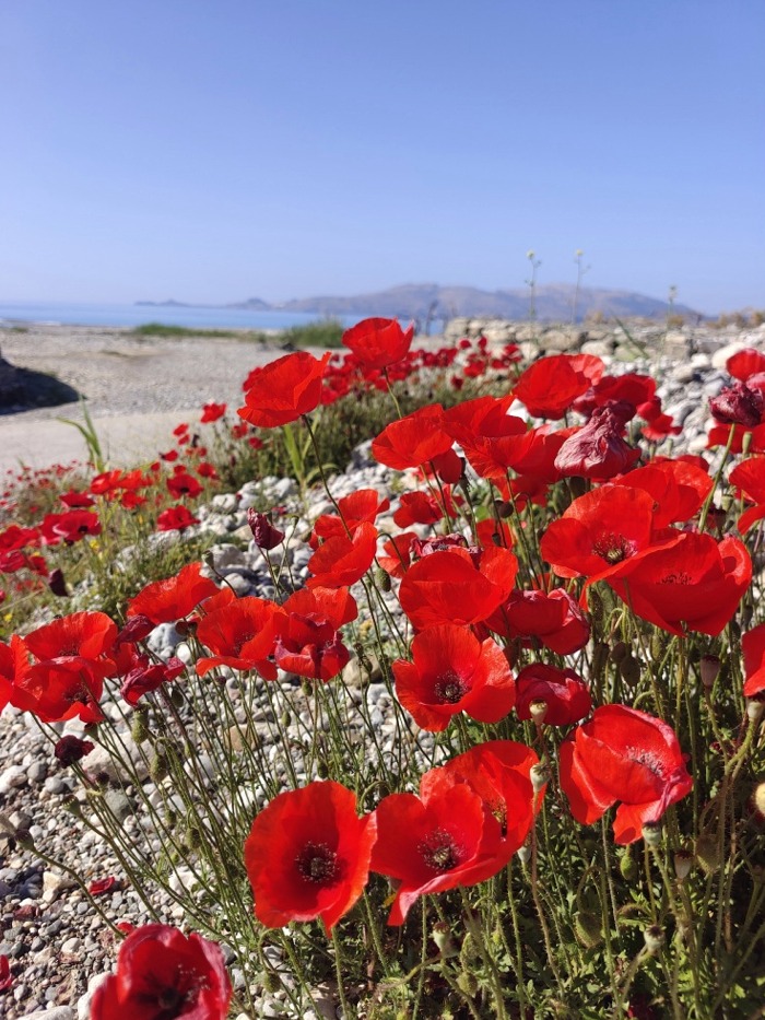 V květnu 2025 byla cesta na pláž díky jarním kytičkám kouzelnější, a když jsme přijeli před 10. hodinou, byli jsme tam zcela sami. Dokonce ani bar ještě nefungoval, všude prázdno.