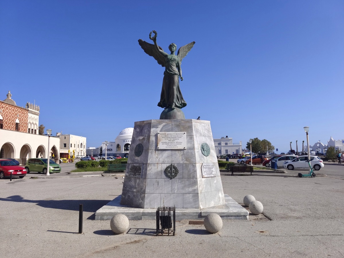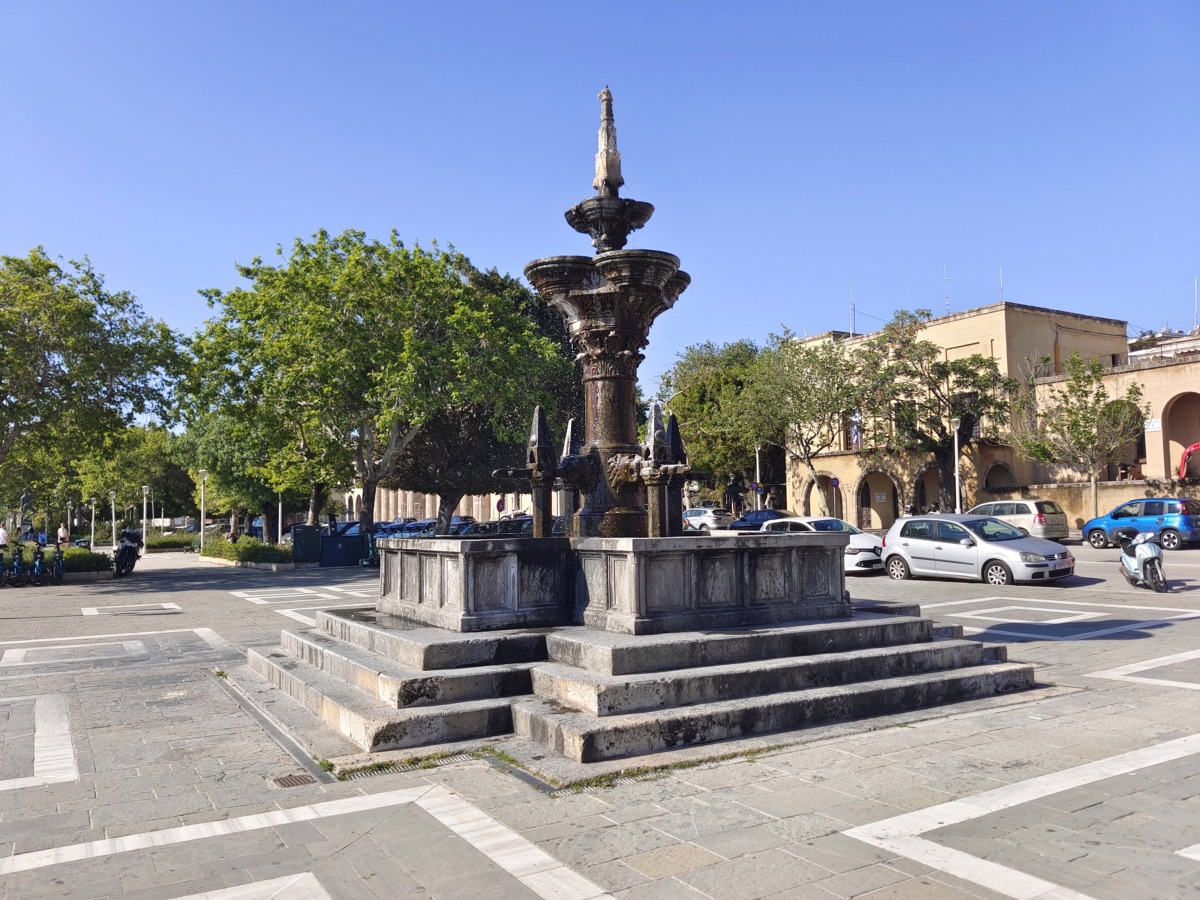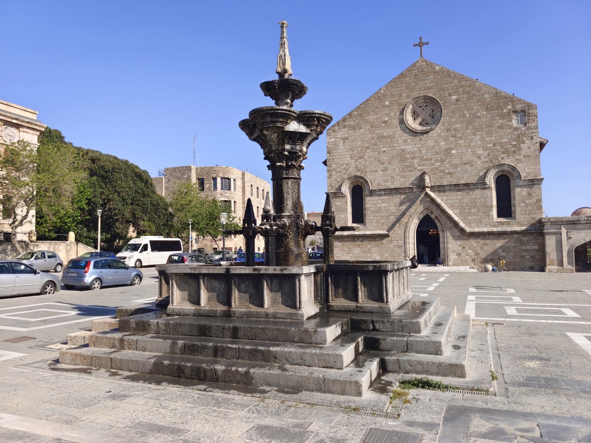 V přístavu Mandraki je také fontána Grande, tato fontána je poloviční replikou slavné středověké fontány Fontana grande ve městě Viterbo v Itálii.