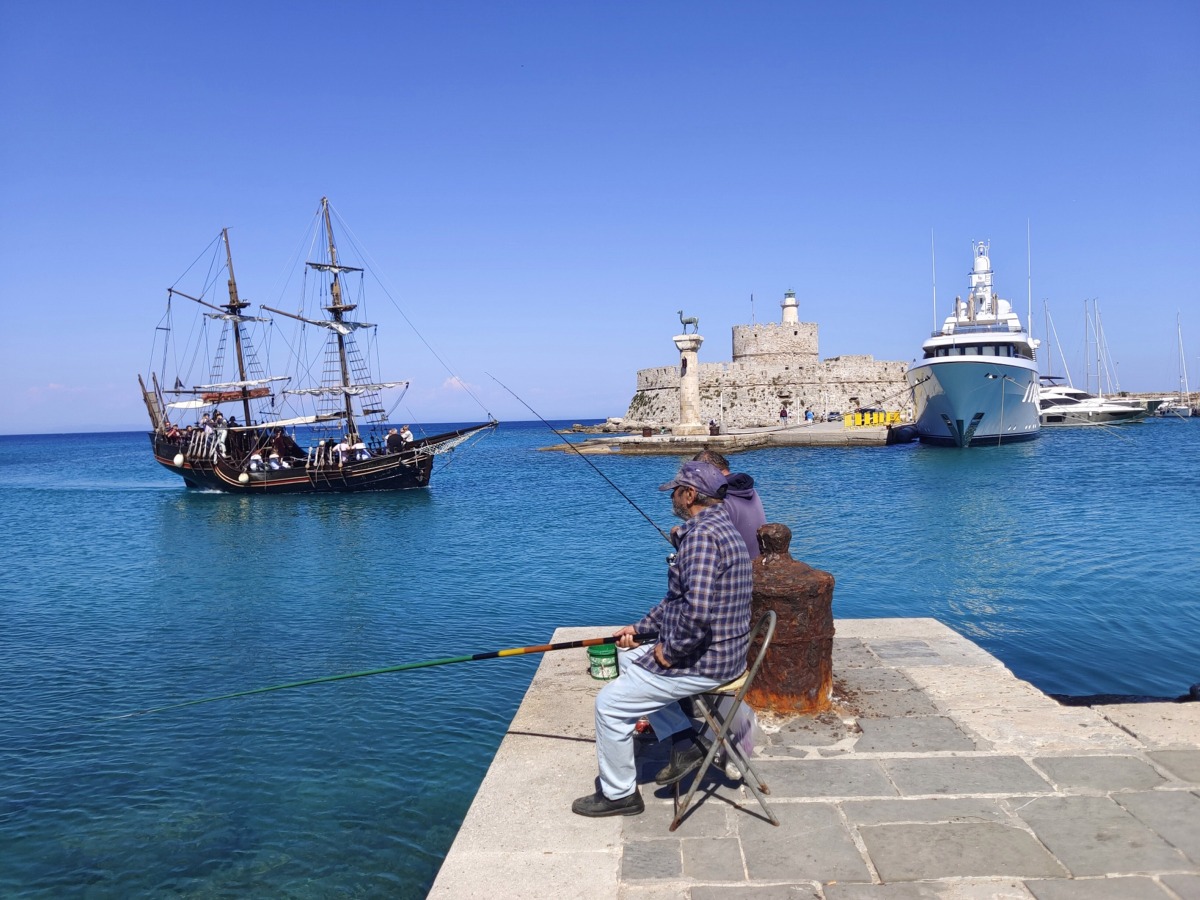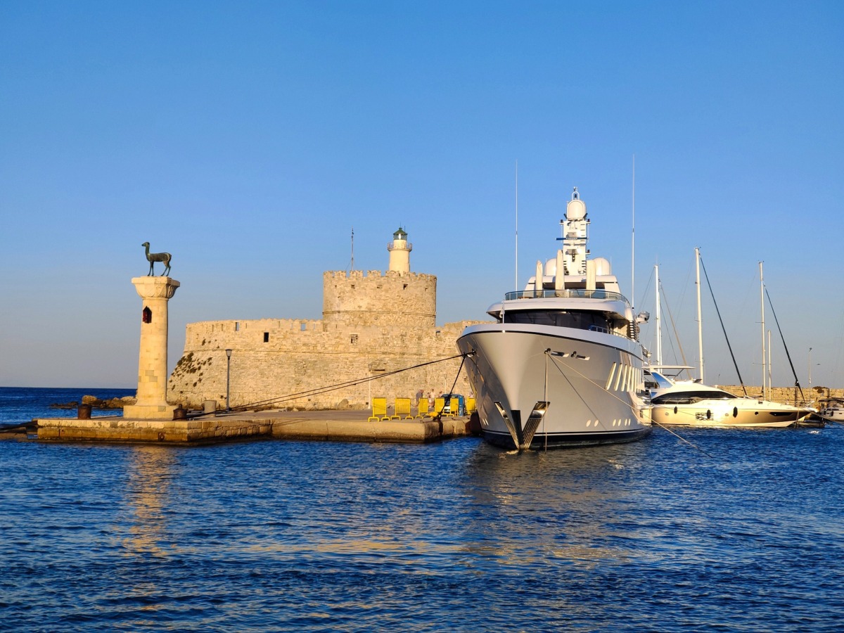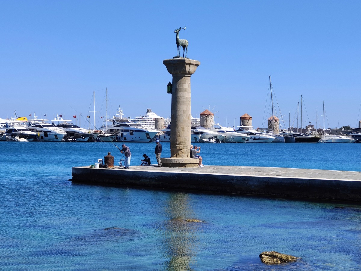 Nyní v přístavu Mandraki stojí jelen. Legenda ostrova Rhodos hovoří že zde stál Kolos z Rhodosu. Pěkné místo pro fotografování a procházky po přístavu.