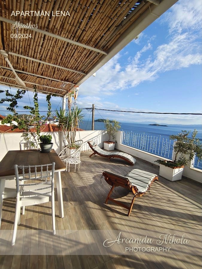 Fantastická je střešní terasa s lehátky, stolem a židlemi, houpačkou, překrásnou rostlinnou dekorací a dechberoucím výhledem na moře. Na terasu si můžete chodit odpočívat, nebo se opalovat.